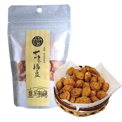 【七味福豆】落花生(南アフリカ産)・寒梅粉ミックス(とうもろこし澱粉・もち米(国内産))・小麦粉・砂糖・植物油脂・乳化調味料(植物油脂・水あめ・たん白加水分解物・醤油)・えび・チリソースシーズニング・澱粉分解物・七味唐辛子・山椒・膨張剤・調味料(アミノ酸等)・パプリカ色素・酸味料・香辛料抽出物【原材料の一部に落花生・小麦・えび・乳成分・大豆・ごまを含む】 - 内容量 七味唐がらし小袋(15g)木の瓢箪付/七味ちりめん(40g)/七味福豆(55g)